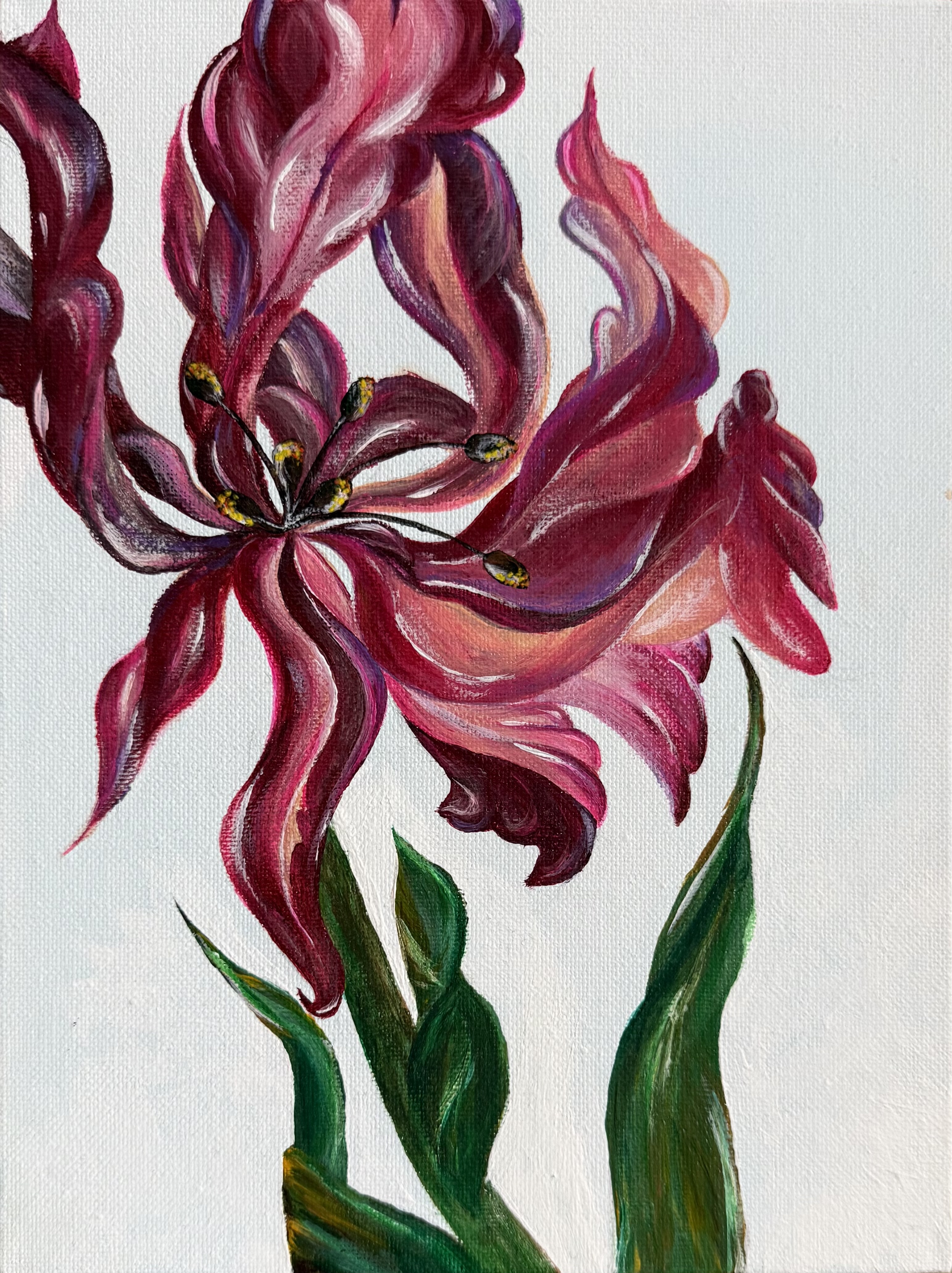 Tulip at the end of her beautiful life. Acrylic paint on cardboard canvas. (18x24cm)